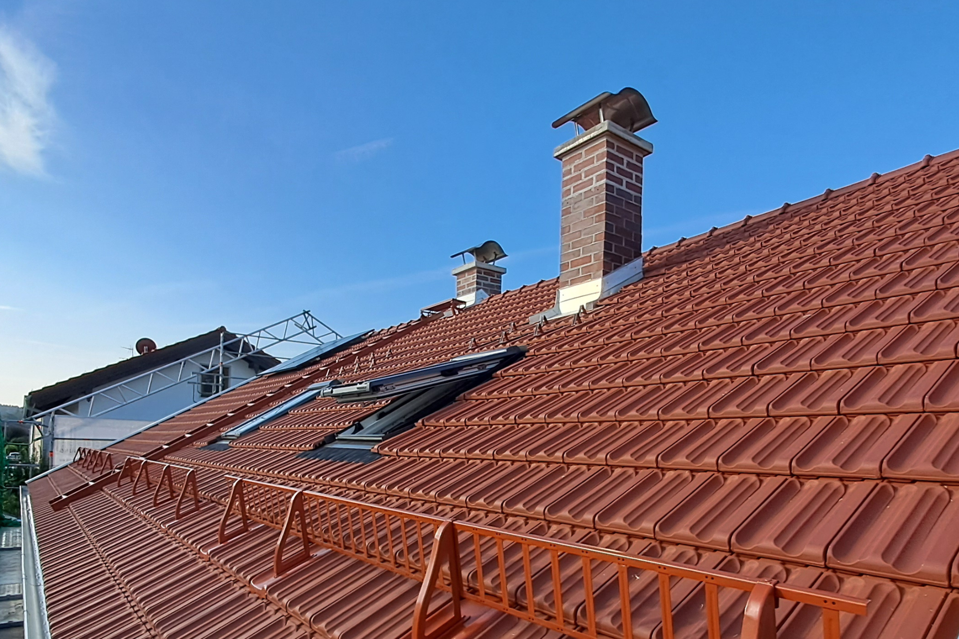 Zuletzt nehmen wir die Übergänge vor. Dachfenster, Kamine, Entlüftungen: Alles wird sauber eingebunden, damit es dauerhaft dicht bleibt.
